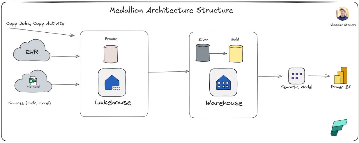For context, Steinert Analytics operates Microsoft Fabric aligned to a medallion architecture, which I’ve mentioned in previous issues: